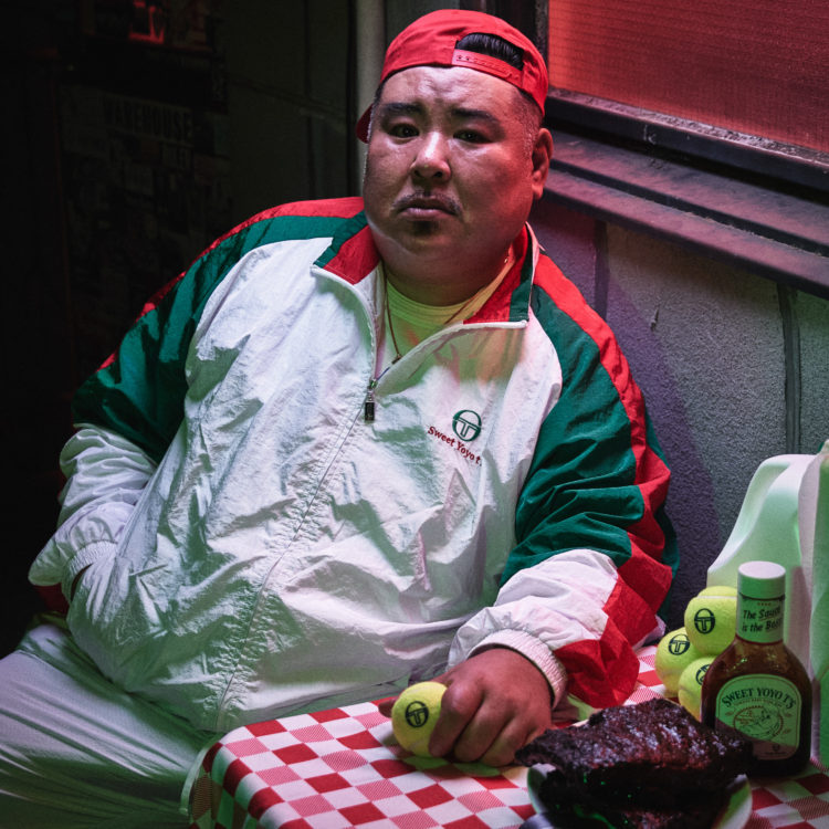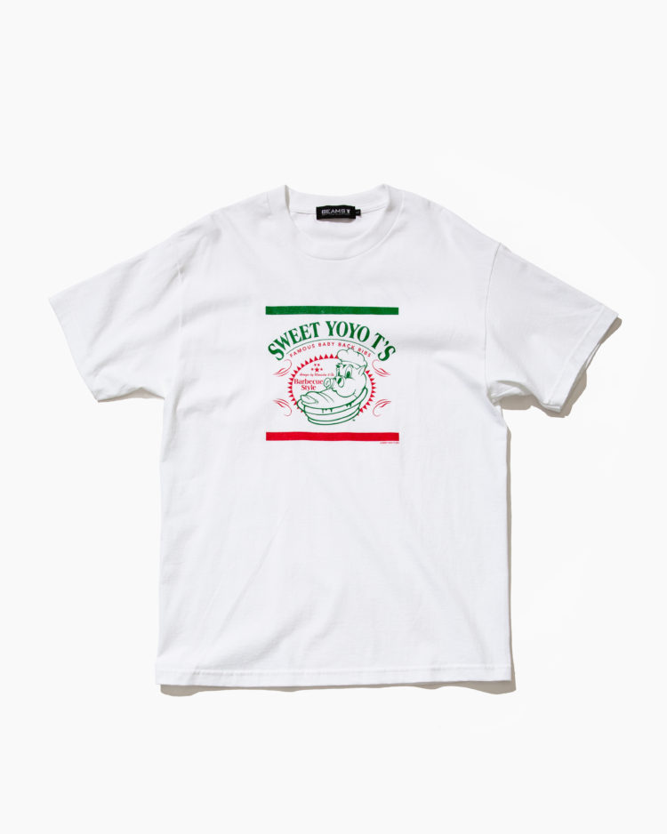 「BOWL HEAD inc」は、日本のハードコアシーンの要を担う音楽レーベル。一方の《Winiche&Co.》は、ストリートアートをバックボーンに持つブルックリン生まれのブランド。両レーベルの主宰者の深いリレーションシップと互いの偏愛を具現化する「SWEET YOYO T’S」は、昨年5 月末に架空のバーベキューレストランをテーマにしたポップアップを「ビームス T」で開催し、大きな反響を呼んだ。