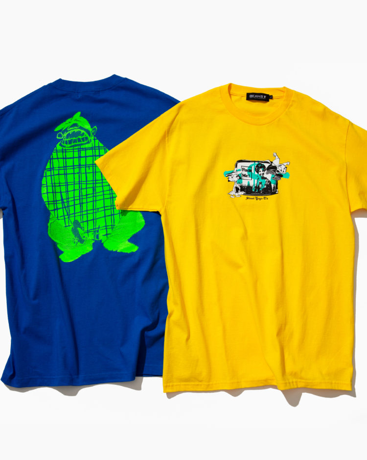 さらに、「SWEET YOYO T’S」と「ビームス T」のコラボレーションアイテムとして、セットアップとスニーカーに合わせてTOME をモチーフにしたキャラクターのT シャツを製作。またハードコアカルチャーにインスパイアされたWIN のグラフィックプリントを落とし込んだT シャツ、ロングスリーブT シャツも製作された。