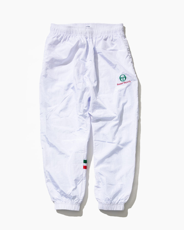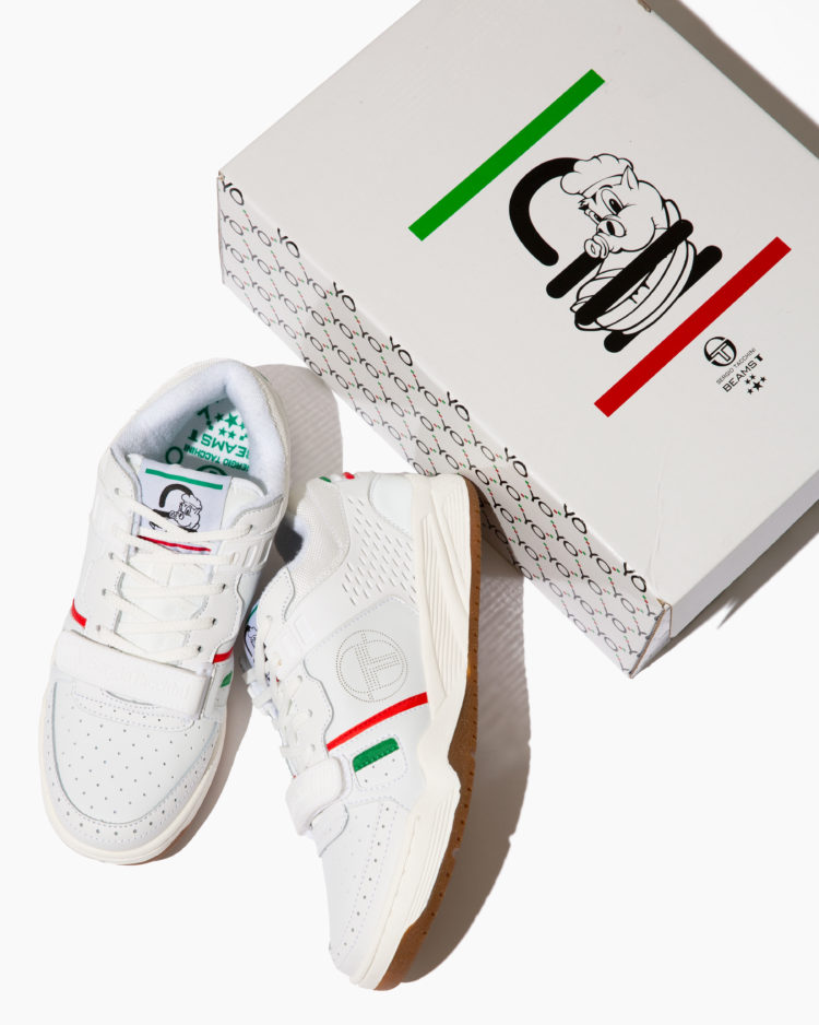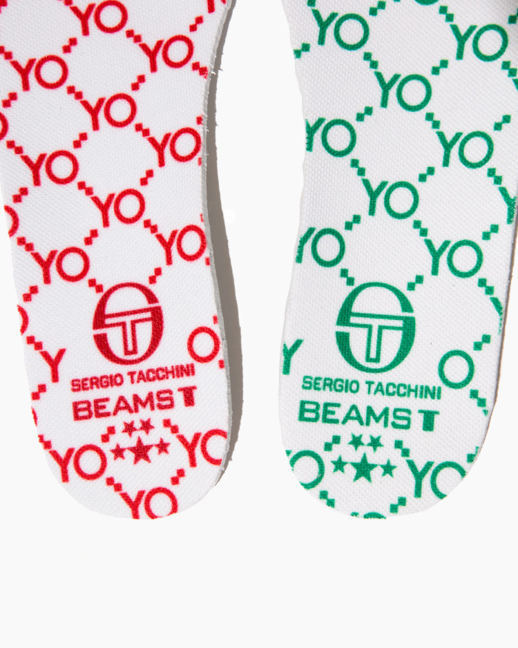11 月6 日(金)より開催される第2 回のポップアップは、規模感をさらに拡大し、「ビームスT 原宿」「ビームス ストリート 梅田」の2 箇所で同時開催される。今回は、イタリアの老舗スポーツブランド《セルジオ タッキーニ》を豪華ゲストブランドとして迎え、セットアップとスニーカーを特別制作。このトリプルネームのアイテムは、TOME とWIN と親交の深いアメリカ・ペンシルバニアのハードコアバンド、「コールド ワールド」が2005 年にリリースしたアルバム『ICE GRILLZ』のジャケットがインスピレーションソースに。計算されたロゴの配置と、スニーカーに反映された80 年代後半から90 年代前半を彷彿とさせるギミックが印象的なコレクション」だ。