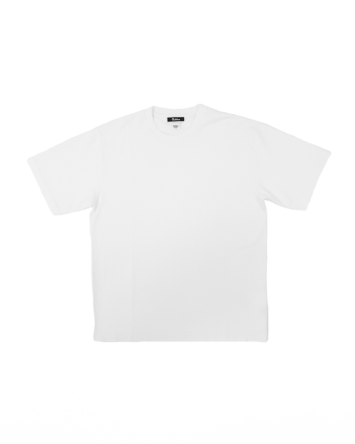そして今回、サスティナブルな生産背景から作られる高品質なプロダクトに共感した《エディション》が別注するTシャツは全8色の展開が行われ、型は1からともに制作された。シルエットは身幅に余裕を持たせながらもすっきりとした縦ラインになっている。素材は適度なオンスでタフなコットン100%の生地を使用し、ヨーロッパ生産の美しい縫製技術が加わることで1枚でも様になる上品な仕上がりだ。