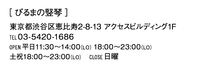 2月23日(土)発売の弊誌最新号のP113「ASIAN TABLE IN TOKYO」内、恵比寿「びるまの竪琴」の営業時間につきまして、誤表記がありましたので、訂正してお詫び申し上げます。