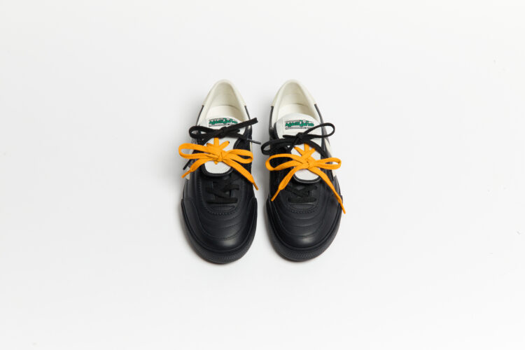 本コラボレーションでは、アッパーを覆うオーバータンを採用。往年のサッカースパイクを想起させるクラシックなルックスに仕上げた。一枚仕立てのパンチング入りタンは、アシンメトリーなレースアップを可能にするなど、アレンジの幅を広げている。アッパーには、ブランド史上最も柔らかいウルグアイ産の「O.T.(オーガニック・トレース)」レザーを使用。履き始めから足に馴染むフィット感も魅力だ。カラーはブラック、ホワイト、パールピンクの3色展開で、それぞれ3色のスペアシューレースが付属する。