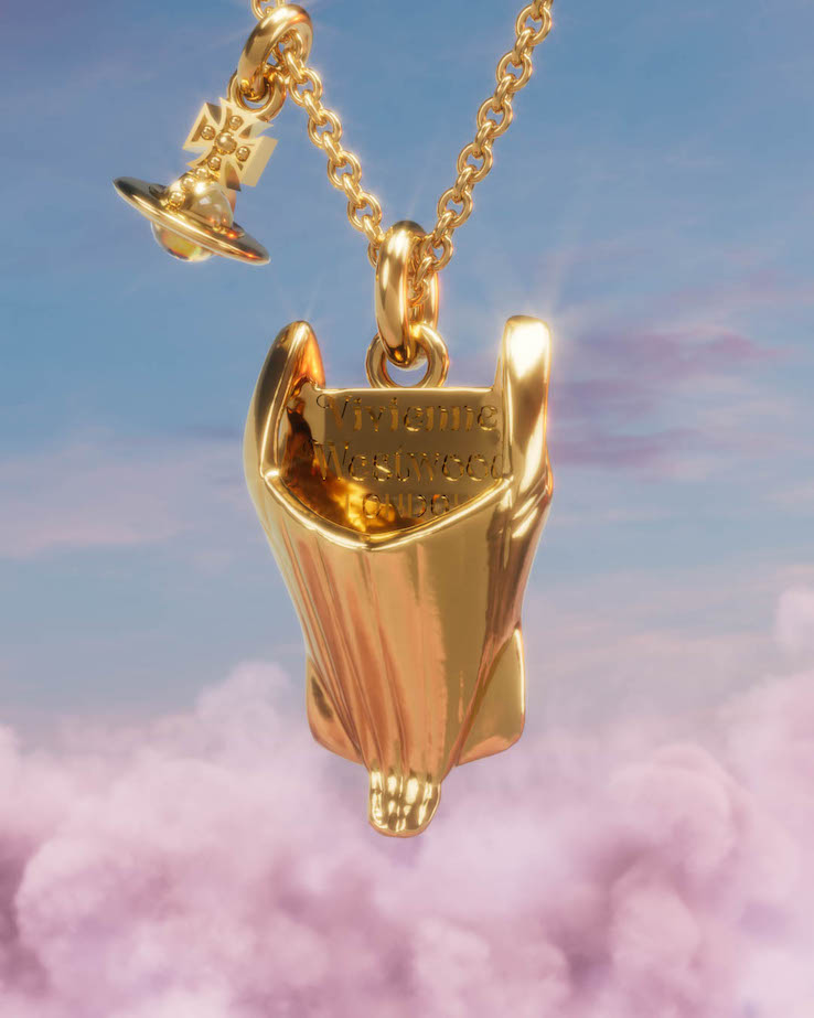 会場では、デザイナーとしてのヴィヴィアンのコルセットデザインにおける創意工夫と、その夫アンドレアスによる歴史的な衣服への新たな解釈が盛り込まれた特別な7点を展示するほか、ブランドにおける最初期のコルセット「PORTRAIT CORSET」を3Dチャームにとして仕上げた限定ジュエリーを発売する。