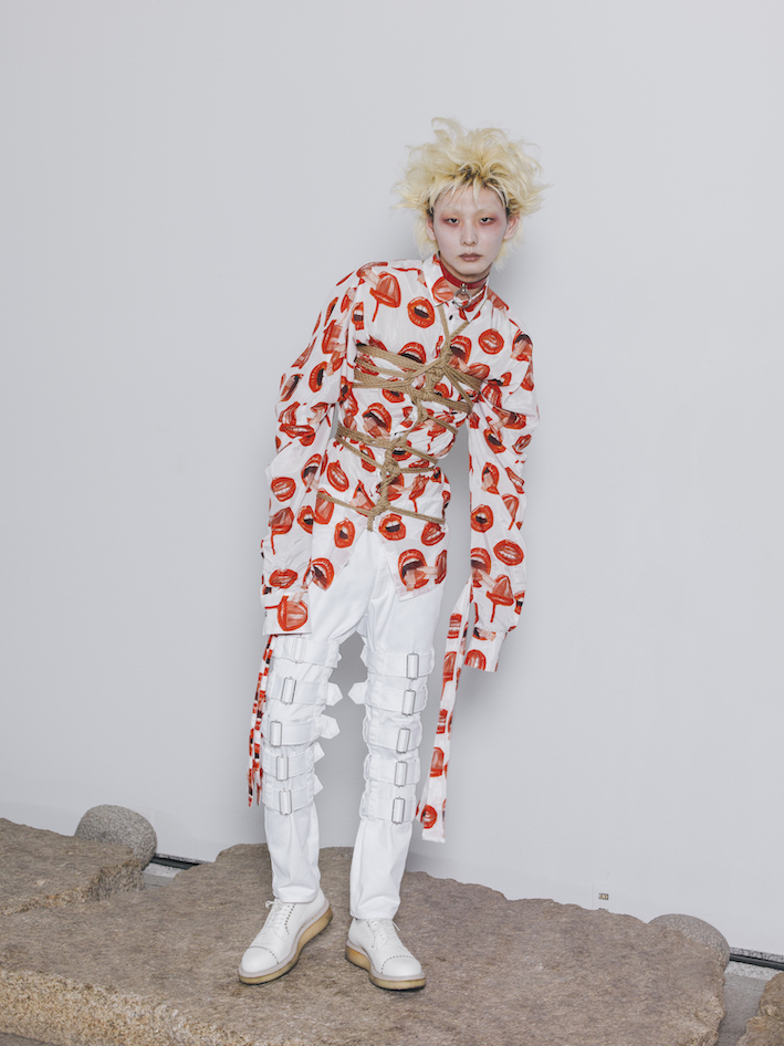 僕はHajime Kinokoさんの緊縛に、「縛り」という行為を通じて、純粋なまでに自分を追求しているように感じています。それが僕には、縛るという行為そのものに精神的な自由を求めているように見えるんです。身体的不自由と精神的自由が共存する至高のメタファーとして、Kinokoさんには今回のコレクションに協力して頂いてます。