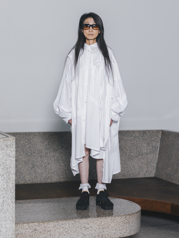 JUNKOさんの叫びは、汚れのない純粋な力の象徴です。それは僕の服作りにおけるマインドの一つでもあるんです。それをしっかりと表現したかった。だから、建築家イサムノグチの“天国”という場所でショーを行うことで、外界とは完全に遮断された一つの異世界を作り上げました。その中で、赤ん坊のようなピュアな生命体が産声を上げているかのようにJUNKOさんに演じてもらうことで、純粋な力というものを体現したかったのです。