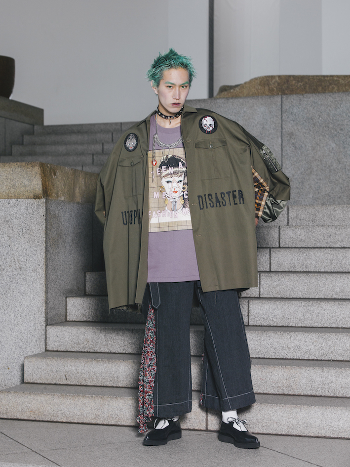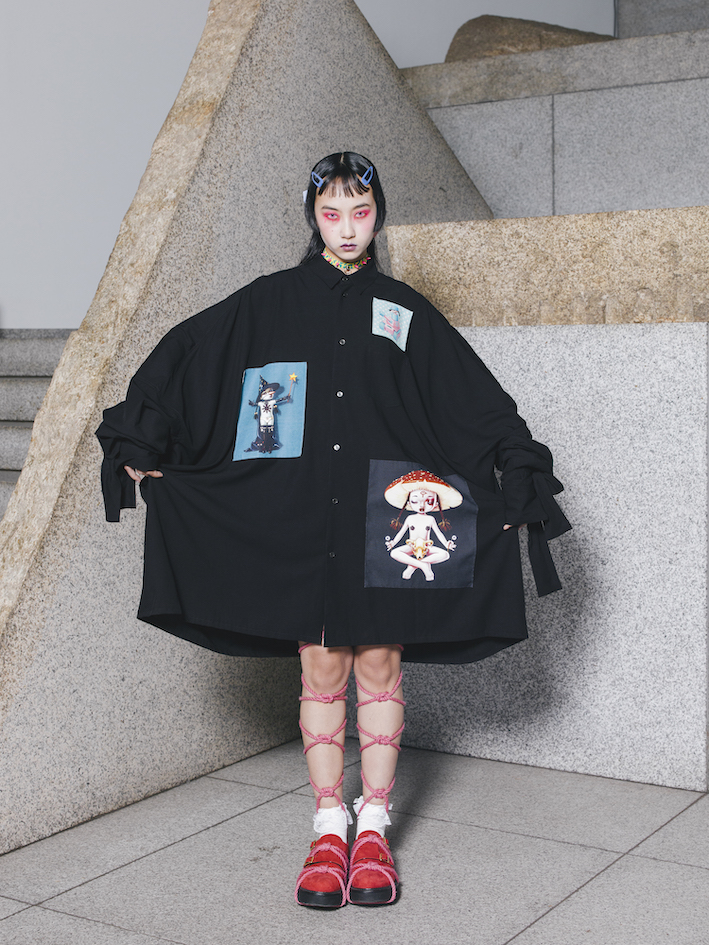 ーー今回のコレクションでは、多くのルックにグラフィックアーティストのトレヴァー・ブラウン氏の作品がプリントされていましたね。彼はイギリス出身のアーティストではありますが、彼のテーマである少女はどことなく東京のサブカルチャーを彷彿とさせます。そこには何か意図があったのでしょうか?