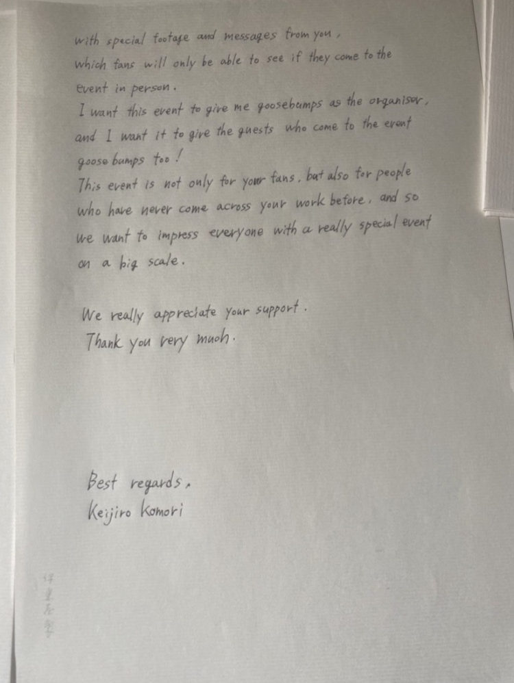 トレント・レズナーの『自分にとり肌がたつ事が一番大事なんだ』という言葉と自分自身の初期衝動を信じ、奮い立たせることで実現できた最高のイベントだった、と小森は最後に語った。