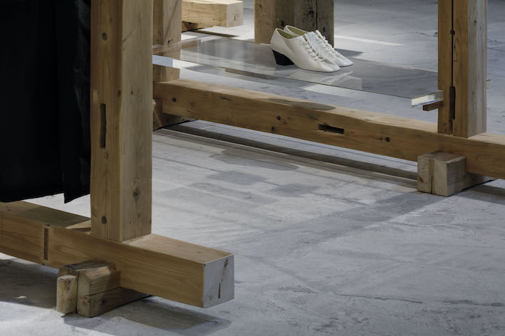 ―ストアでは、内装と什器に築100年の日本の古民家の廃材が再利用され、日本の伝統的な技法である木組みが用いられています。日本と縁の深い《ルメール》らしいものだと言えると思いますが、このアイデアはどのようにして生まれたのでしょうか?