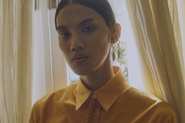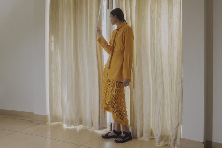 「22S/Sは、シリアの詩人アドニスの詩集『A Time Between Ashes & Roses』をテーマにしています。この詩集は第三次中東戦争後に書かれたので破壊的な印象を持たれるかもしれませんが、決してそうではありません。憂鬱な時代の中でも光を見出すことができるというメッセージを発信しています。今回のコレクションでは、コロナ禍をその詩集になぞらえて、楽観的でカラフルな夏を表現しました。インドやパキスタンの民族からインスピレーションを受け、お祭りで見るような鮮やかなカラーを使用し、田園の風景の中でルックを撮影しました。また、パキスタンジュエリーのデザイナーとコラボレーションしています。このようなアーティストとブランドのコラボレーションは私が継続していきたいと思っていることです」