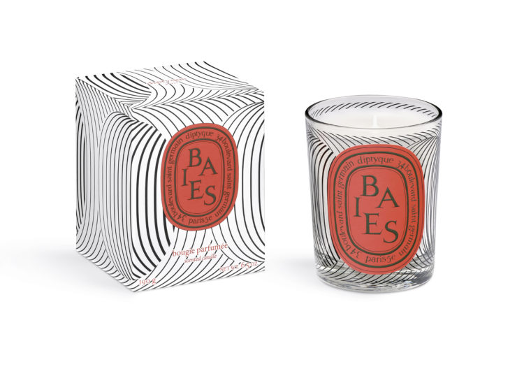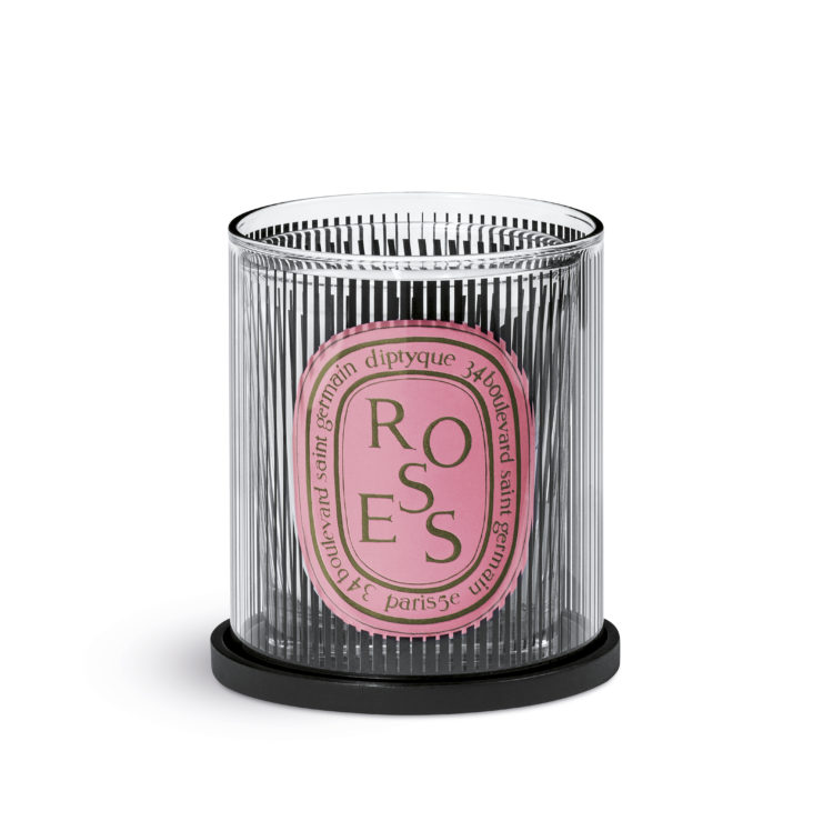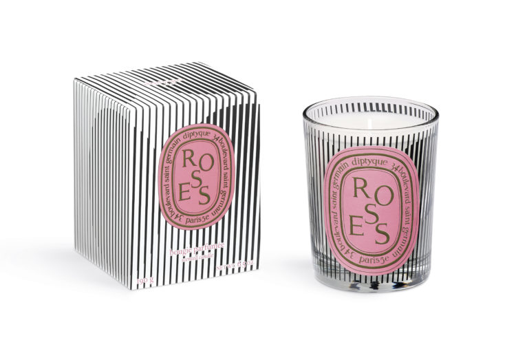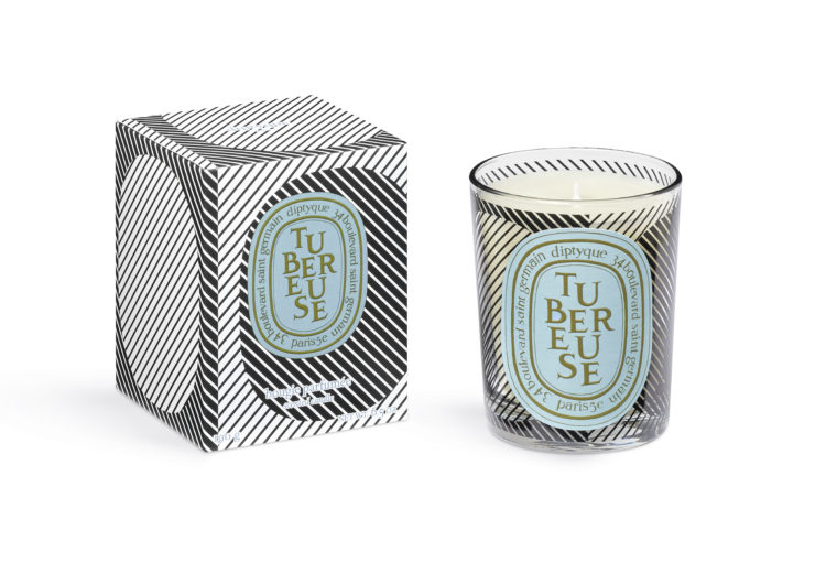 白地に黒いラインが描き出す模様で飾られたキャンドルは、それぞれを引き立てるパターンでデザインされている。「べ」は細かな曲線が重なり合い、「フィギエ」は同心円のフォルムがせめぎ合い、「ローズ」はコントラストを描く垂直線が交互に表現され、「テュベルーズ」はエッジの効いた縞模様が交差。それぞれのキャンドルのオーバルは、くぼんで見えたり、くっきりと現れたり、あるいは解き放たれながら姿を現し、まるでダンスのように揺らめく。