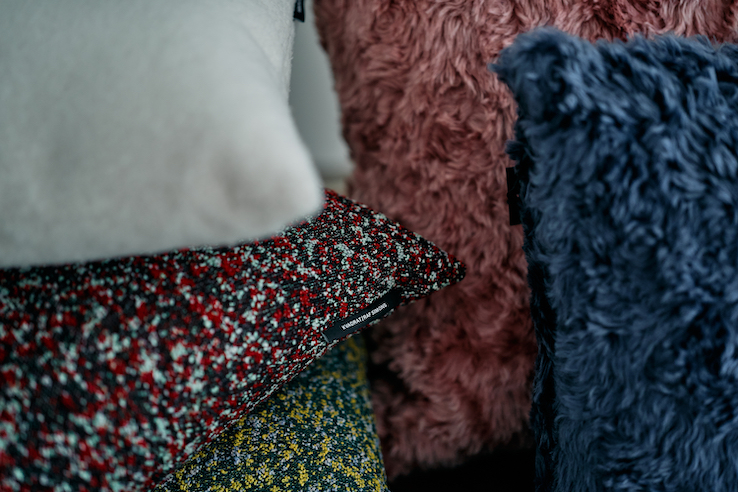 《クヴァドラ/ラフ・シモンズ)》は、《クヴァドラ》のプレミアムラインとして2014年に誕生。《クヴァドラ》の品質に対するこだわりと、《ラフ・シモンズ》による上質さと遊び心を両立させたインテリアテキスタイルやクッション、スローなどのアクセサリーを展開している。2014年3月にロンドンで発表したファーストコレクションのテキスタイルは、Sterling Ruby(スターリング・ルビー)とコラボレーションした《ラフ・シモンズ》のコレクションでも採用され、大きな話題を呼んだ。その後も、東京、ニューヨーク、ベルリン、ミラノなどで、新作発表やインスタレーションを開催している。