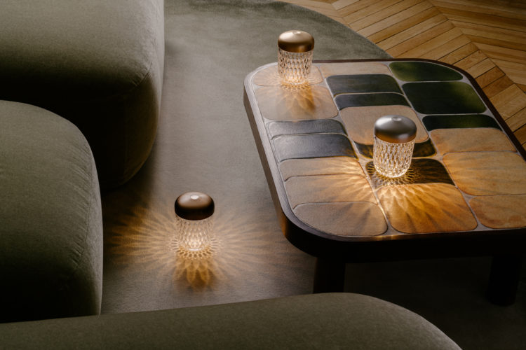 新店舗のオープンを記念し、コードレスでどこにでも持ち運ぶことができる「〈フォリア〉ポータブルランプ」のミニバージョンが、世界に先駆け麻布台ヒルズ店にて先行発売される。2種類の色調と3段階の明るさ調節を備えたミニポータブルランプは、サンルイの革新的なエスプリを象徴するライティングの代表作だ。