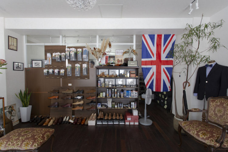 井の頭公園沿いの並木を歩いてゆくと、ブリティッシュグリーンのテントに木枠のドアが見えてきた。金文字で「KNIGHTSBRIDGE SHOE REPAIR」と書かれた扉を開けると大きなユニオンジャックが目に入る。店頭には、半生に渡りイギリスへの情熱を燃やしてきた店主の鬼塚氏が立つ。